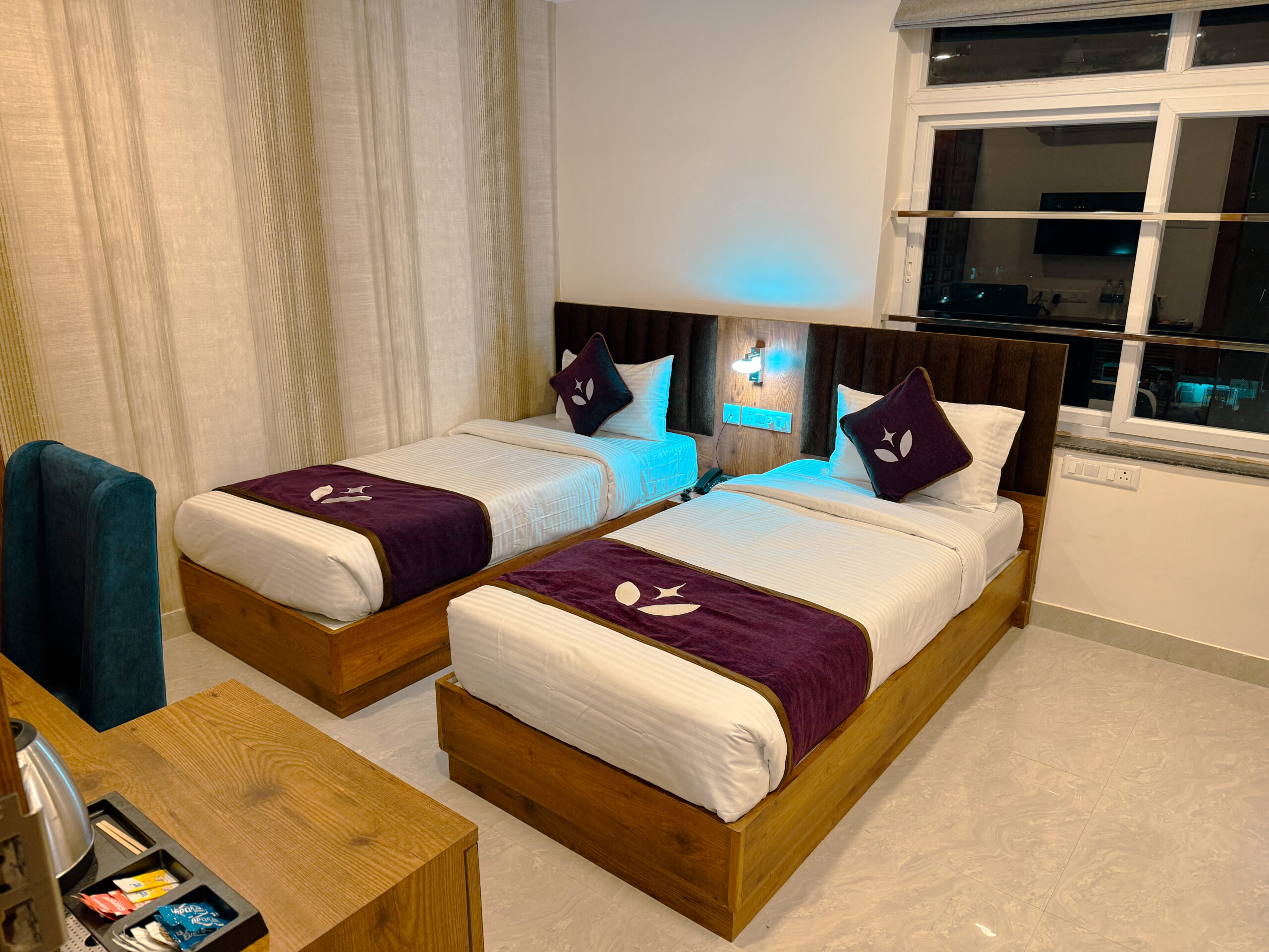 Neat, clean and hygienic rooms, All electrical apparatus in perfect condition, hot and cold water 24 hours. Polite, quick and professional service. Purnendu and Ms. Santoshi are very attentive and respond quickly. Complimentary breakfast added attraction.
